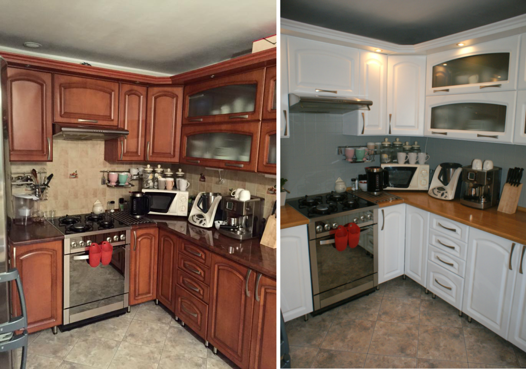 Ремонт кухонной мебели не обязательно должен быть связан с большими затратами. Простое решение — покраска кухонной мебели — неплохая идея для метаморфоза кухни. Все, что вам нужно — это подходящая краска, несколько основных инструментов и хорошая подготовка шкафов. Такая простая процедура позволит с небольшими финансовыми затратами полностью преобразить интерьер.