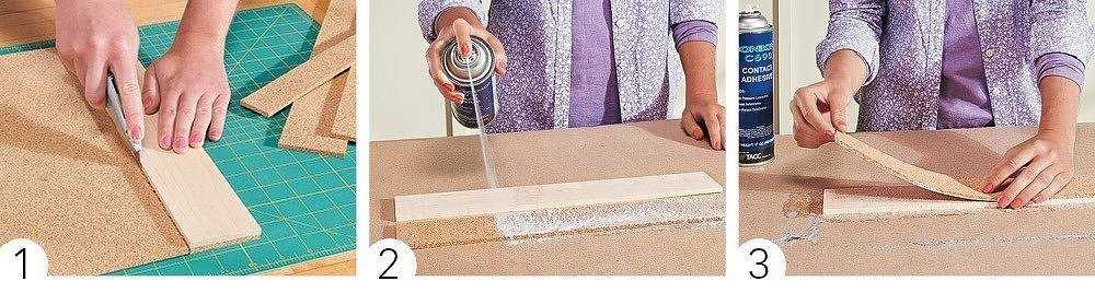 Такой коврик вы можете собрать из деревянных дощечек сами или купить готовый в хозяйственном магазине. Главный момент тут – верхнее пробковое покрытие, дающее те самые приятные тактильные ощущения: вставать босиком на такой коврик очень приятно! Воспользуйтесь листовой пробкой (её продают в строительных магазинах) или пробковой тканью. Нарежьте материал на полоски нужного размера и приклейте к деревянной основе.