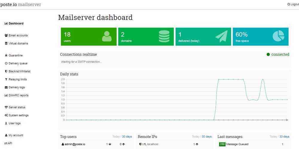 С использованием Poste.io, вы можете получить веб-почту и такие функции, как защита от спама, антивирус и веб-администрирование на своем сервере менее чем за 5 минут. Этот полнофункциональный почтовый сервер хранит пользовательские данные и конфигурацию отдельно от двоичных файлов. Поскольку он хранит пользовательские данные в файлах базы данных SQLite, вы можете использовать эту платформу с внешним хранилищем.