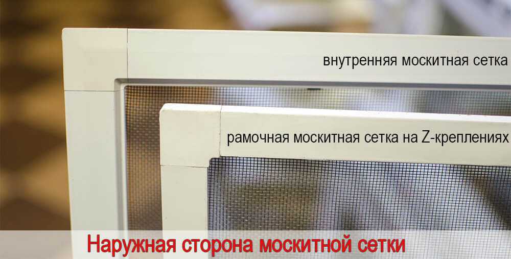 Главное преимущество данного способа крепления москитной сетки — отсутствие необходимости сверления рамы окна. Сетки с z-образными металлическими крепежами поставляются в уже собранном виде, остается лишь вставить их в световые проемы.