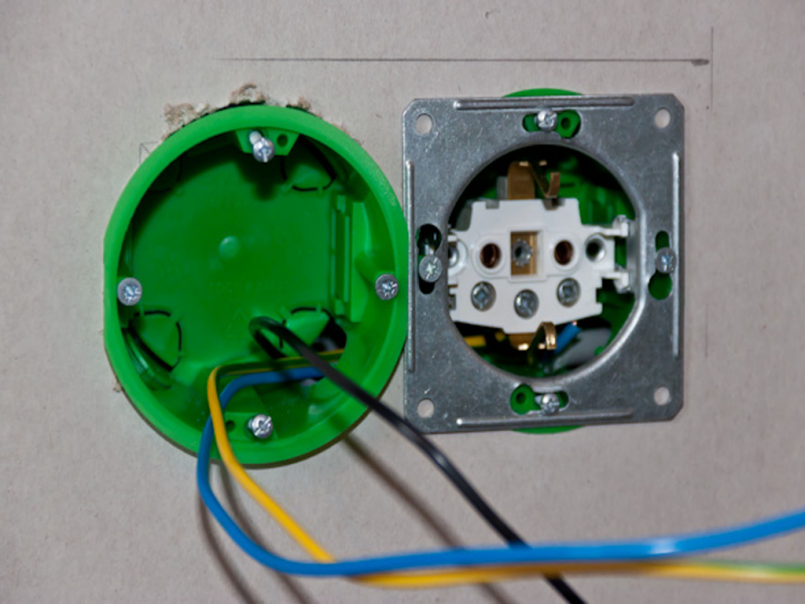 В месте установки розетки должно быть углубление, в которое установлена специальная коробка для выключателя, в которую выведен провод.