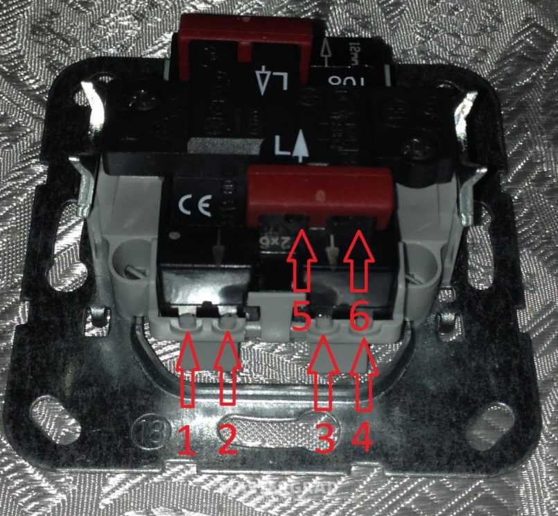 Подсоединяем механизм к проводке, следуя подсказкам маркировки и сообразуясь с цветом провода.
