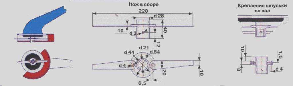Изготовление лопастей лучше произвести на фрезерном станке, особое внимание обращая на учет острых кромок и углов – они не должны излишне гнуться при их последующей заточке. Заклепочные крепления, имеющие небольшой люфт по вертикали, позволят качественно производить срез, особенно с сухостоя. С целью недопущения затирания лопастей в случае их возможного расширения от тепла, нужно тщательно проверить наличие зазоров (не меньше 1,5 миллиметра) между лопастями и трубой
