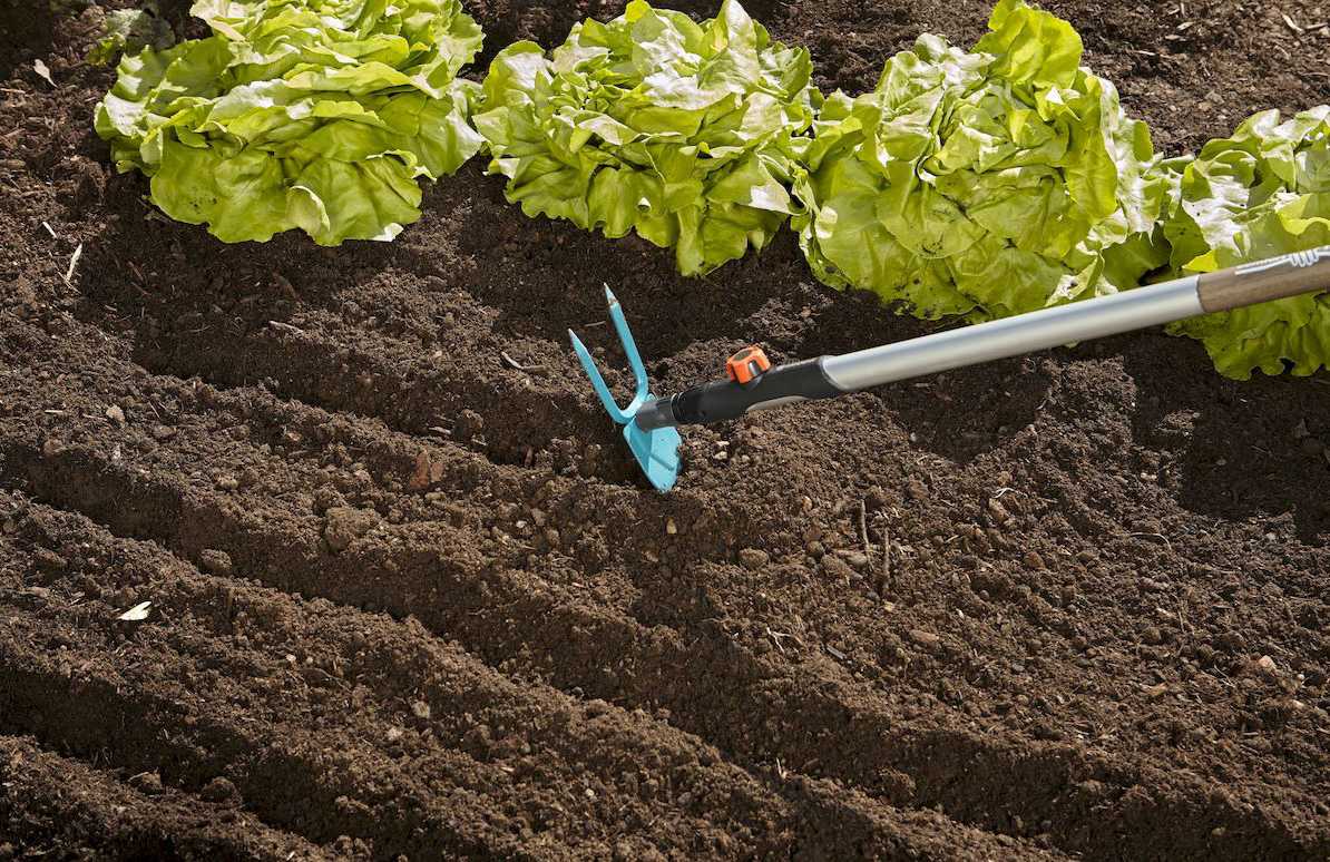 В посадках, расположенных близко друг к другу, лучше всего пользоваться мотыжкой. Небольшой инструмент разрыхлит землю, при этом не порежет растения и не повредит корневые системы.