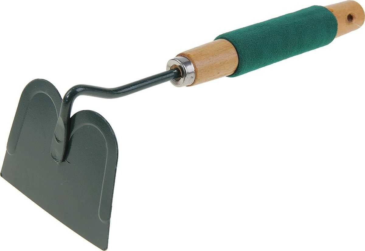 Тяпка – универсальный садовый инструмент, необходимый для рыхления земли между посадками. С помощью неё легко полоть грядки, убирать сорную траву, ненужные корни. Инвентарь подходит для того, чтобы сделать углубления в почве для посадок семян, помогает окучивать картофель и другие культуры. Можно рыхлить ей землю у кустов, насыщая грунт кислородом или делать углубления для полива.