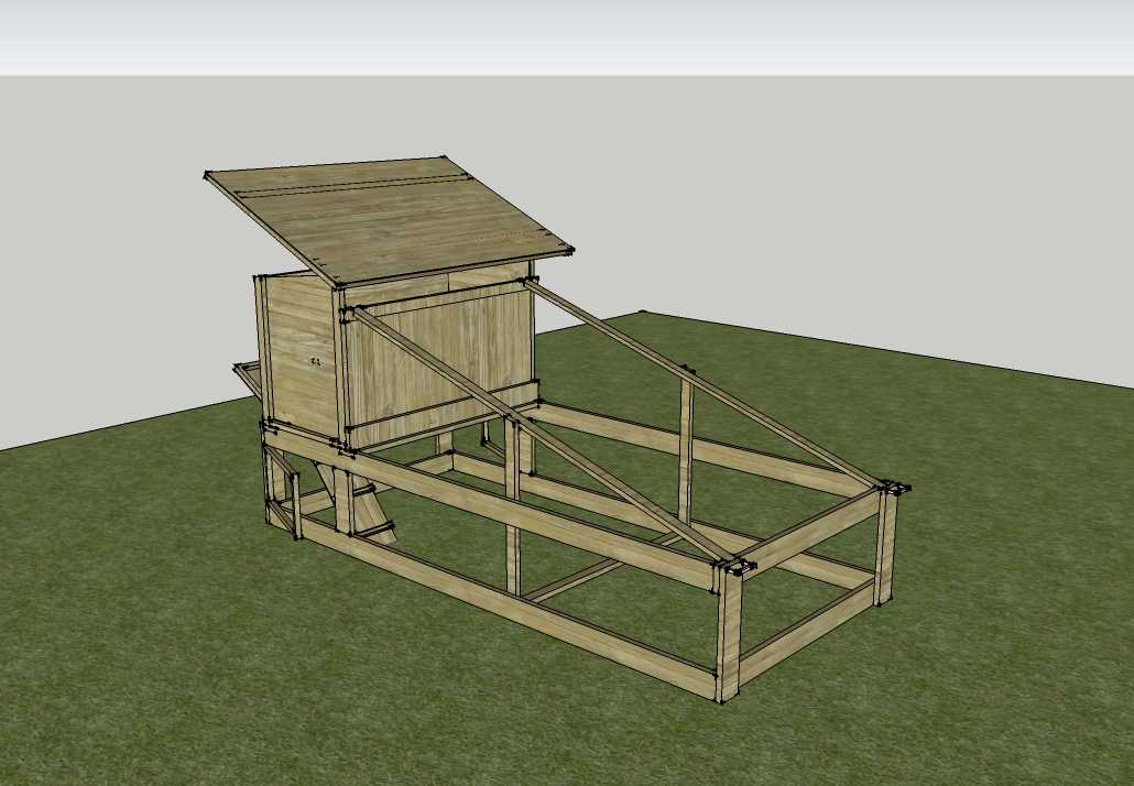 ====================================жена еще пару недель назад сказала, если будут деньги пойдем купим цыплят, вырастим и будем иметь свои куриные яйца. Сказала возьмем маленьких 2-5 дней и будем выращивать.А за это время пока они маленькие сделаешь большую клетку для них.В этом месяце для поддержки блога перечислили мне 50евро и 1000 рублей. 1000 рублей сразу же потратили на лекарства мелкому, жене и мне — засопливили, а у меня еще обнаружили к моему «букету» еще и гайморит в общем работаем на аптеку.Завтра приедет сестра жены (она уехала с мужем жить в Россию) привезет с России памперсы, лекарства, кое, что с одежды для старшего первокласника. А оставшиеся 2800р. вчера удалось получить в Донецке у обнальщиков под 10%.1000 рублей ушла на продукты, а оставшиеся распределили 1200рублей за электроэнергию и сегодня купили аж 8 цыплят, 7 курочек и одного петушка за 200 рублей.Интересно было мне технарю смотреть как определяли кто курочка, кто петушек — переворачивали вниз головой и если голову подымал то курочка, а если подворачивает то петушек — да Век живи и век учись.Принесли, посадили цыплят в коробку — мелкий радостно подбежал и хвать цыпленка за шею. Отобрал, поругал и надавал по рукам. Мелкий типа ему все равно ушел к маме, но потом когда я ушел сделал еще одну попытку схватить цыпленка.Сейчас разпечатаю проект и пойду подбирать бруски для куриного трактора. Мне еще в прошлом году попался и понравился проект который я поместил ниже. Чем мне он еще понравился, это то, что до кур не доберется собака и главное будет чистый двор.как то так======================================== ============Оригинал взят у в