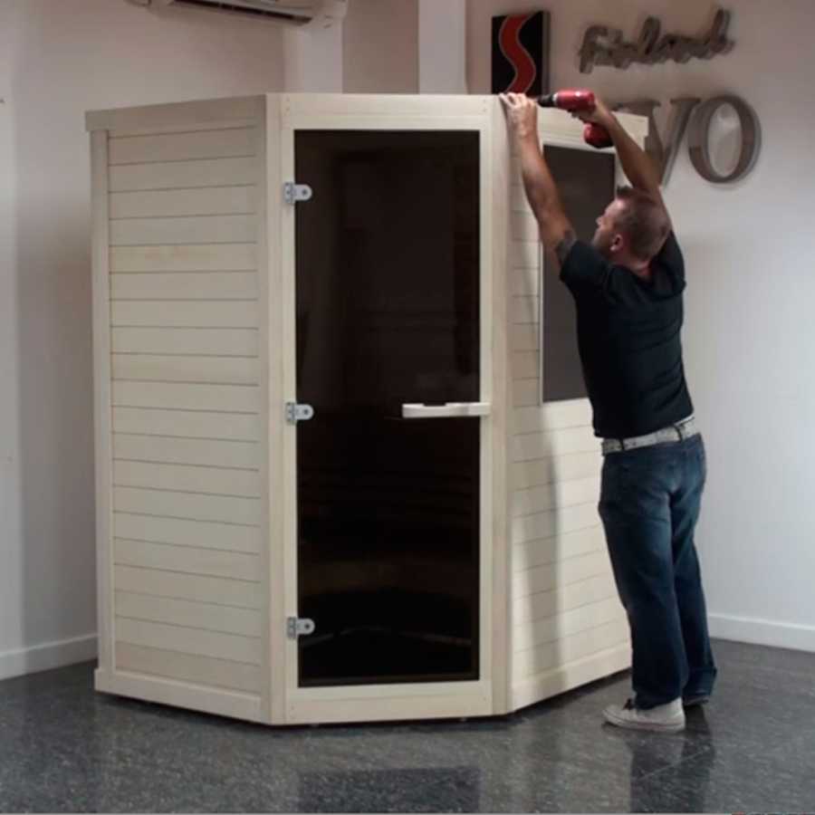 - Финская кабина-сауна. Готовый вариант конструкции, который предназначен для эксплуатации в габаритных квартирах. Отличается высокой надежностью, практичностью и дороговизной.