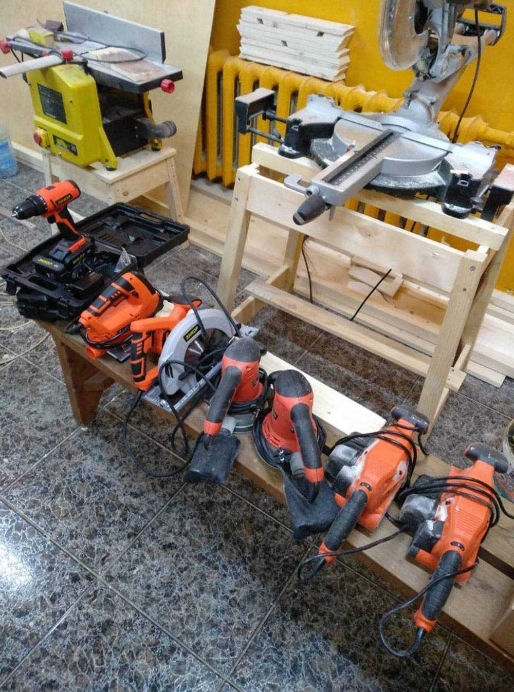 Электроинструменты – это относительно новое явление в истории столярного дела. Однако современное столярное дело без использования электроинструментов уже почти невозможно представить. Несмотря на этом, вам вовсе не обязательно покупать в мастерскую огромное количество дорогих электроинструментов, чтобы стать хорошим столяром. При оснащении мастерской достаточно, в первую очередь, сосредоточиться на следующих позициях: