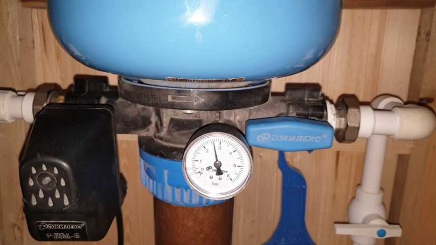 Во время забора воды давление в системе падает, и в определенный момент, при достижении заданных владельцем значений, насос снова начинает работать. За выключение и включение устройства отвечает реле, контроль уровня давления осуществляется с помощью манометра.