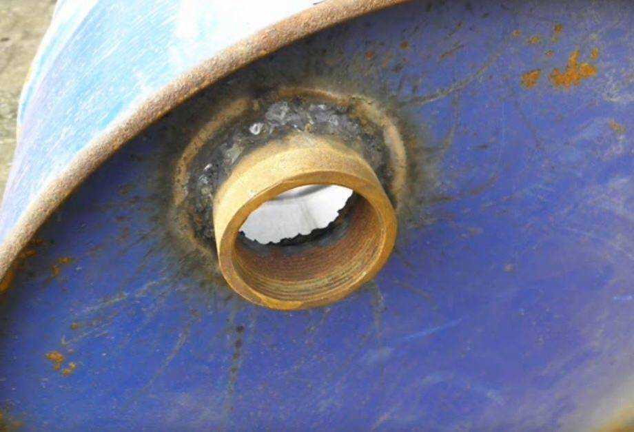Сверлим снизу отверстие и навариваем фланец под трубу 2 дюйма