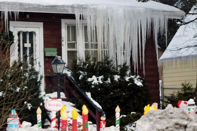 При отсутствии комплекса желобов вода может попадать на поверхность стен и на фундамент, а в зимнее время образовывать большие сосульки