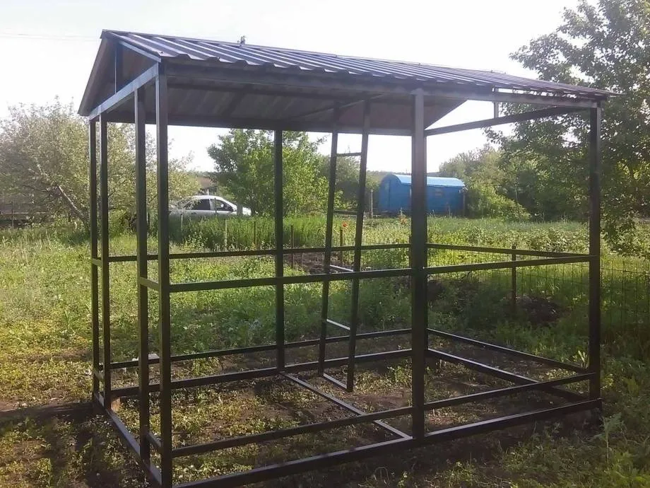 - Крыша может иметь разные формы: полукруглую, одно- или двускатную, сходиться к одной точке и т.д. Для основы крыши лучше использовать трубы такой же толщины, что и для стен, чтобы она могла выдержать снег и ветер.