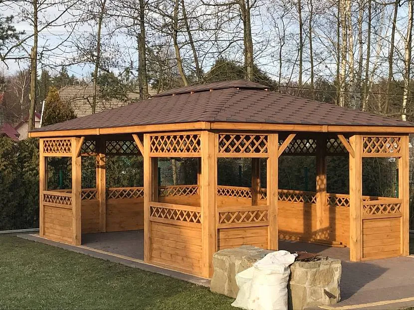 Проще всего из этого списка подобрать размер. Он зависит только от количества тех людей, которые по плану будут там отдыхать. Так, если вам нужно уютное гнездышко для свиданий, выбирайте подходящий дизайн среди маленьких моделей. Если строите место для вечеринок, ищите проект настоящего павильона.