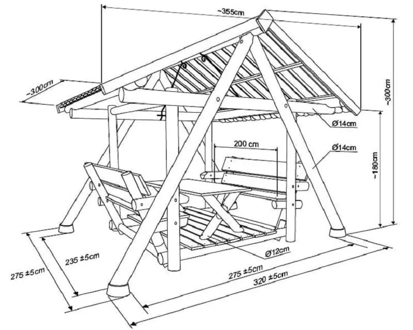- Полная высота – около 300 см, которая измеряется, начиная от основания беседки до конькового узла.