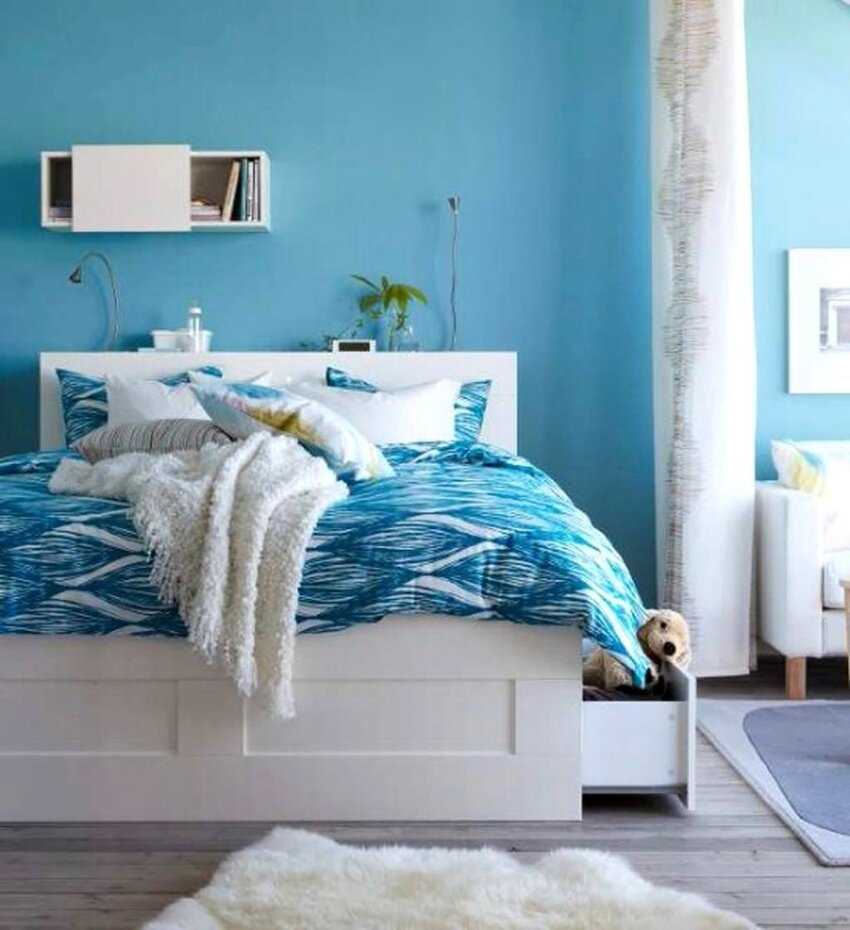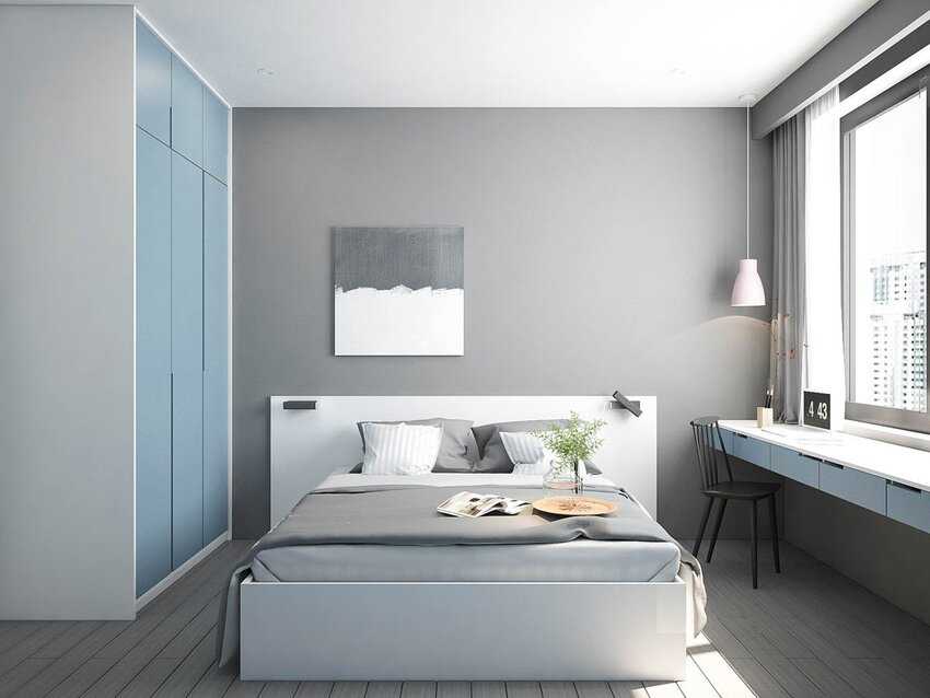 В современных и скандинавских спальнях будут хорошо смотреться светлые оттенки голубого. Поэтому чистый голубой или синий цвета являются идеальным выбором в таких аранжировках, особенно если декорируется тесный интерьер и необходимо визуально добавить немного пространства. Такие цвета будут очень удачными!