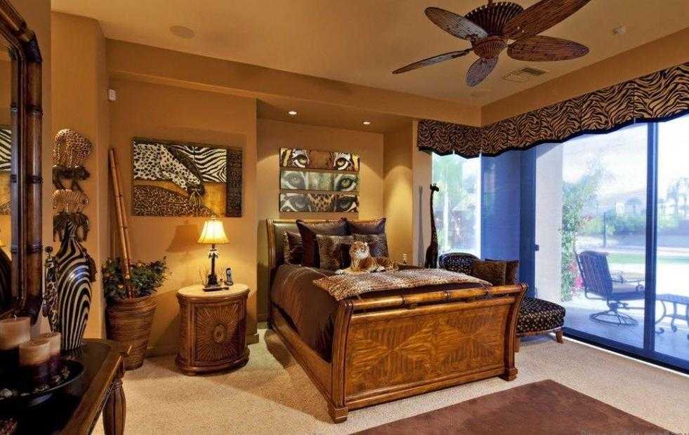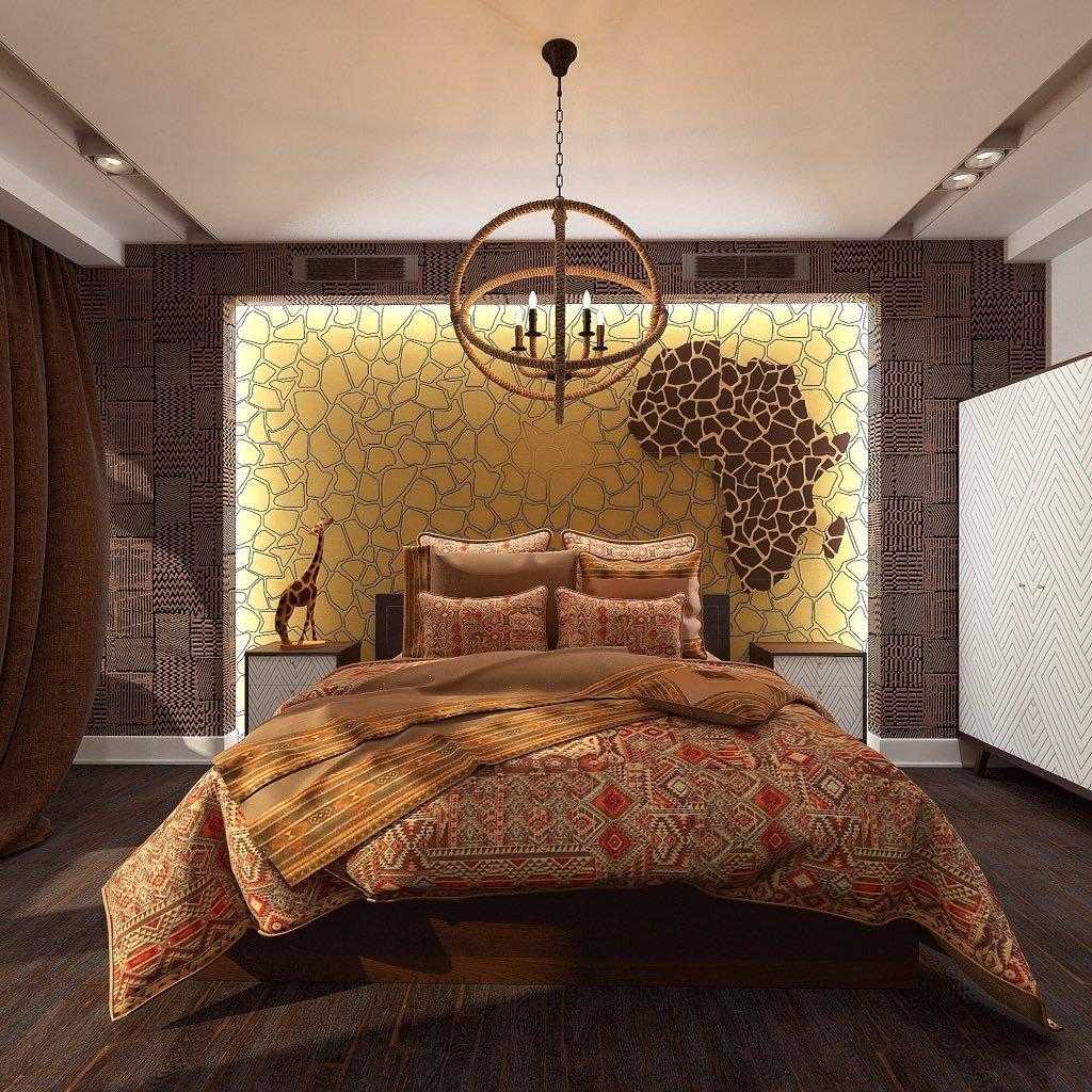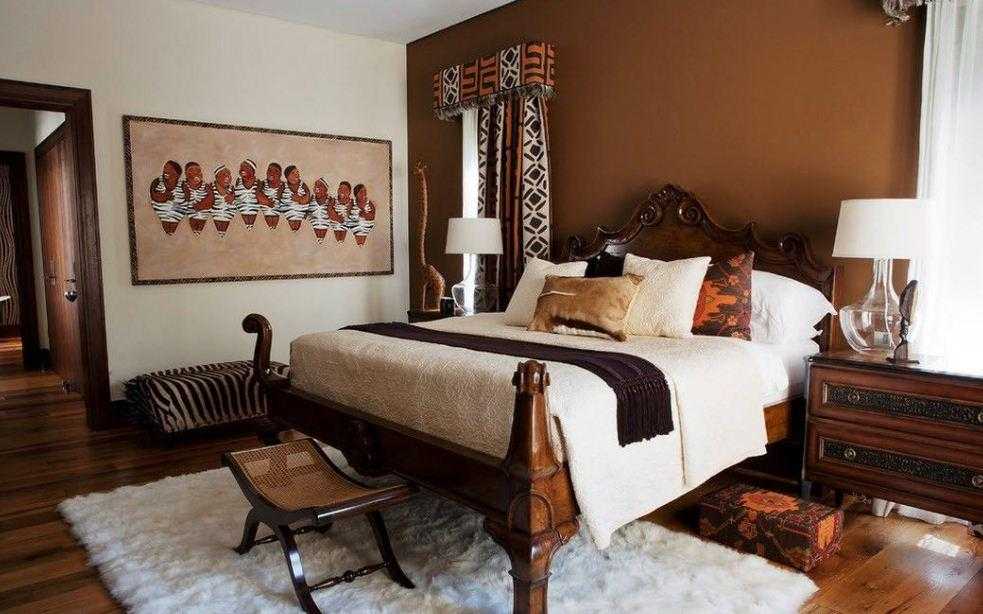 Спальня в африканском стиле должна быть, в первую очередь, уютной, комфортной, расслабляющей.