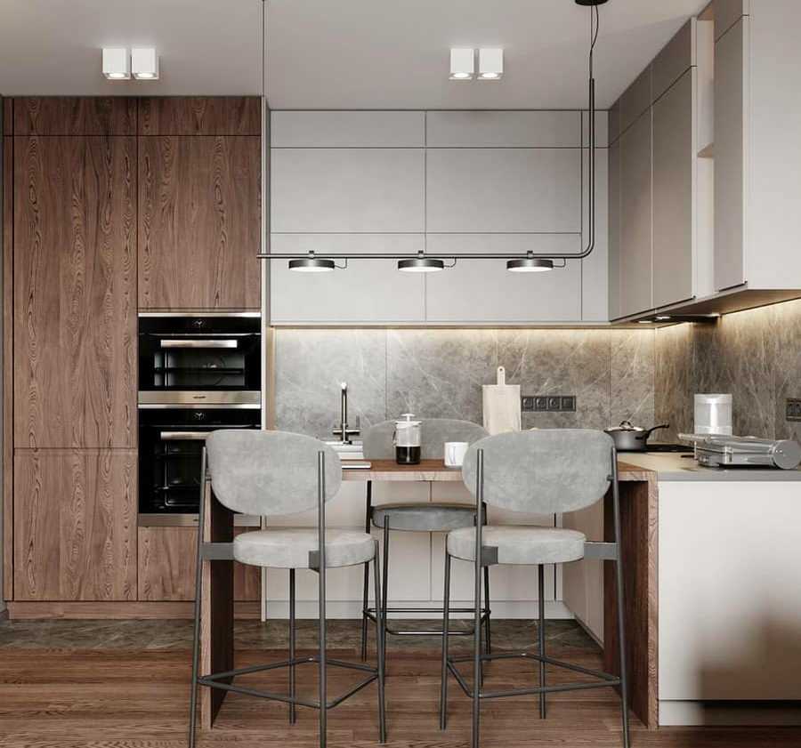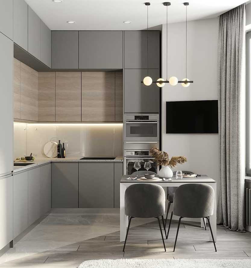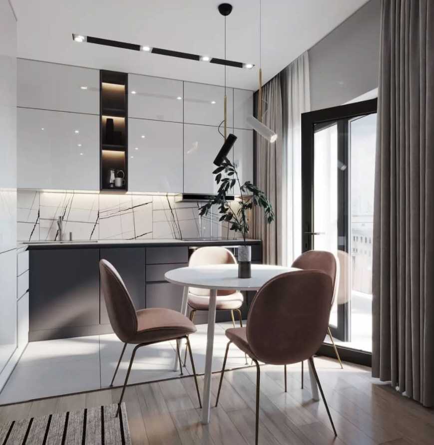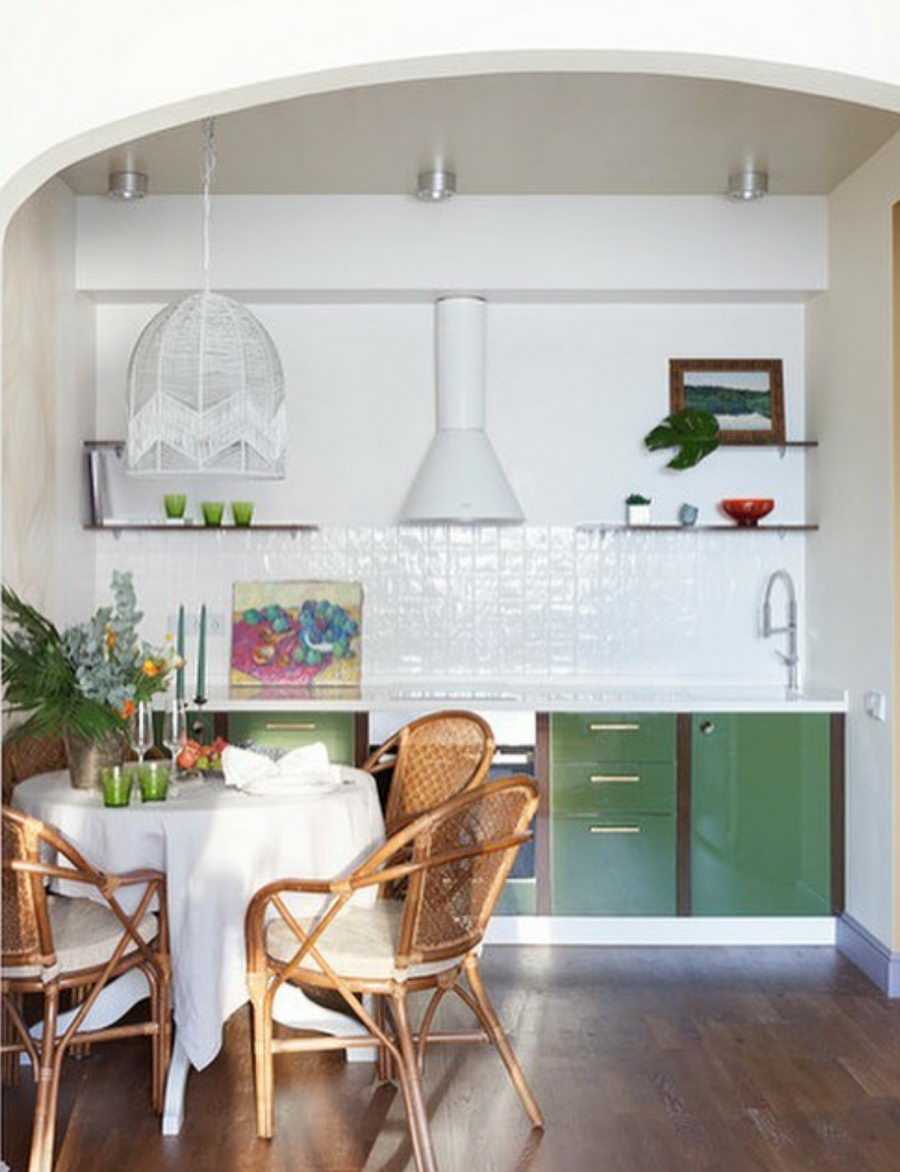 Небольшая кухня визуально станет больше и наполнится дополнительным светом.
