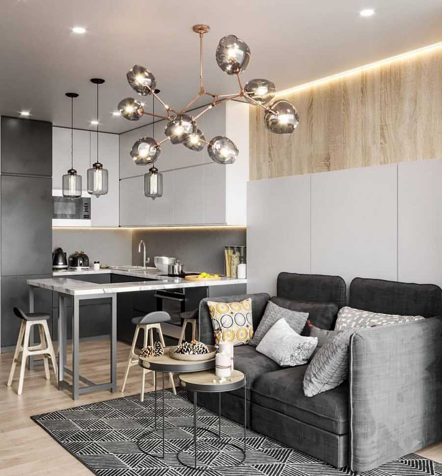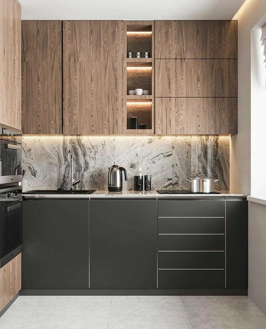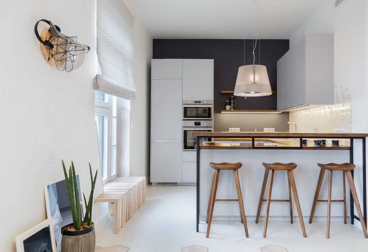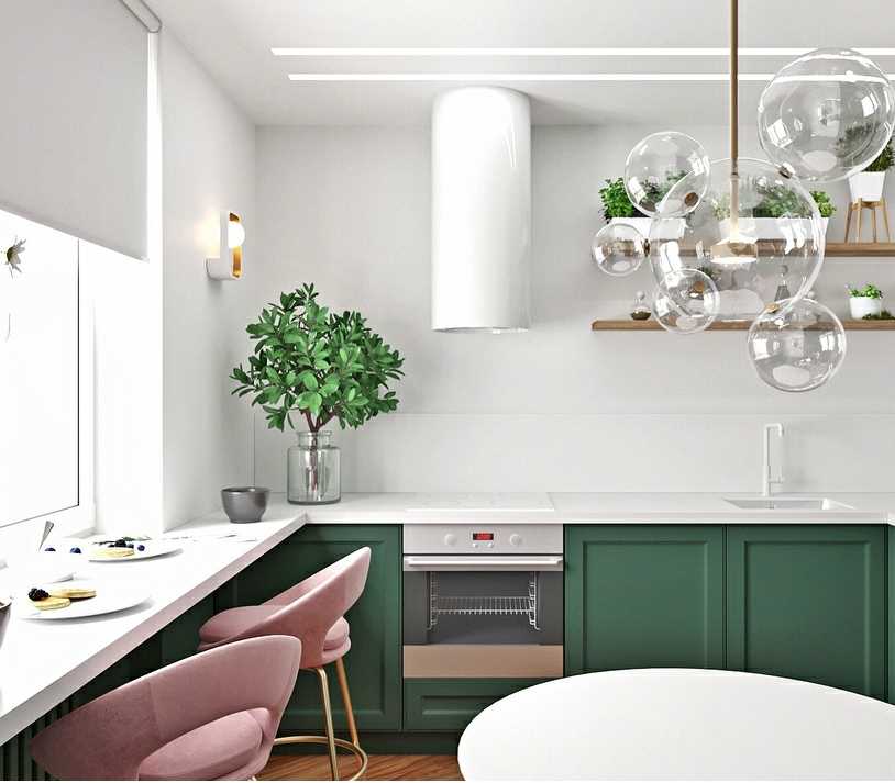 Небольшая кухня визуально станет больше и наполнится дополнительным светом.