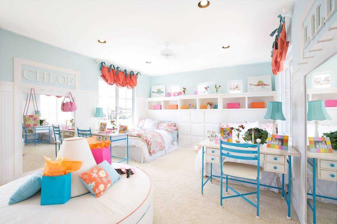 Добиться универсального интерьера детской комнаты поможет использование отделочных материалов белого, зеленого, сиреневого, синего и розового цвета. Избегайте использования в детской комнате агрессивных и темных цветов, так как они угнетающе действуют на детскую психику.