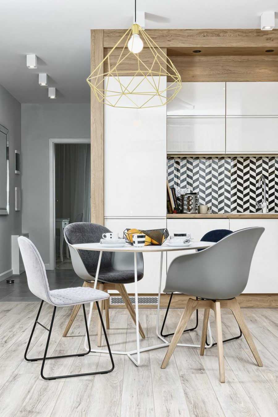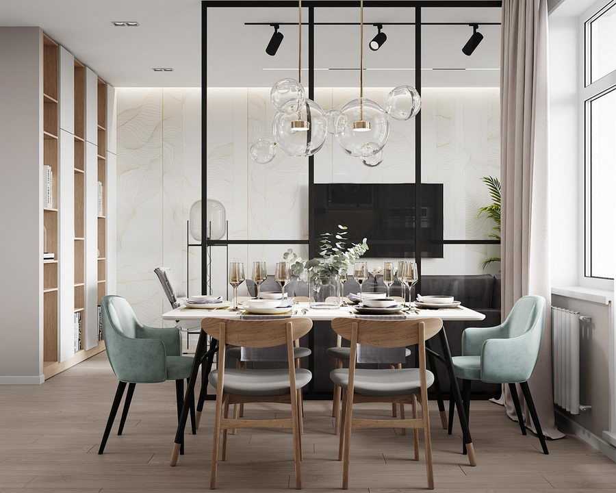 На фото столовая в скандинавском стиле бело-мятного цвета.