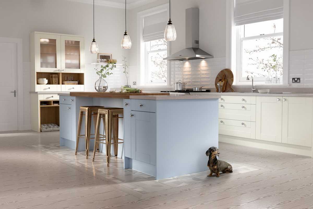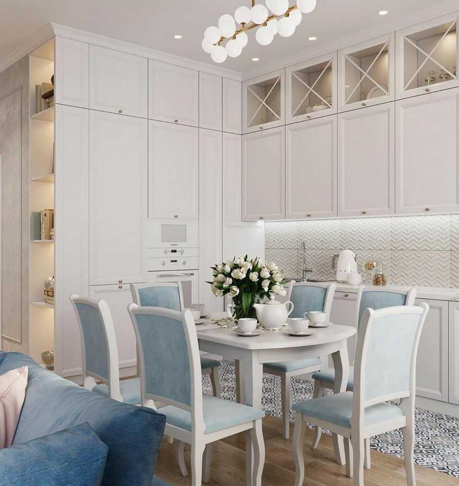 Понятно, что белый цвет в качестве основной отделки кухни, вдохновляет немногих. Его вполне можно заменить пастельными тонами, в которых нет этой стерильности.