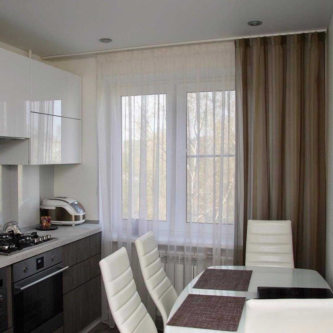 - Еще одна ошибка – неправильный подбор штор. Если ваше окно закрывает листвой раскидистое дерево или оно выходит на север, то в кухне непременно будет ощущаться нехватка естественного света. Как сделать такую кухню светлее? Секрет в отделке проблемной зоны. Оформлять такое окно нужно очень лаконично. Используйте шторы из прозрачных и тонких тканей. Что касается фасона штор, то они могут быть рулонными или римскими. Эти виды минимально затеняют окна. Можно использовать и короткую занавеску из тюля. Это тоже будет хорошим стилистическим решением.