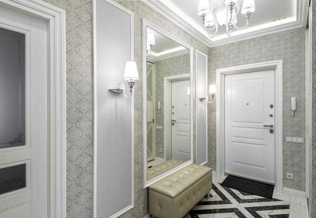 Светлые обои и зеркало во весь рост зрительно увеличат пространство.