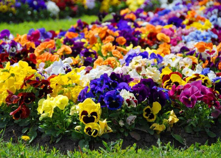 Клумба из анютиных глазок нуждается в регулярном поливе