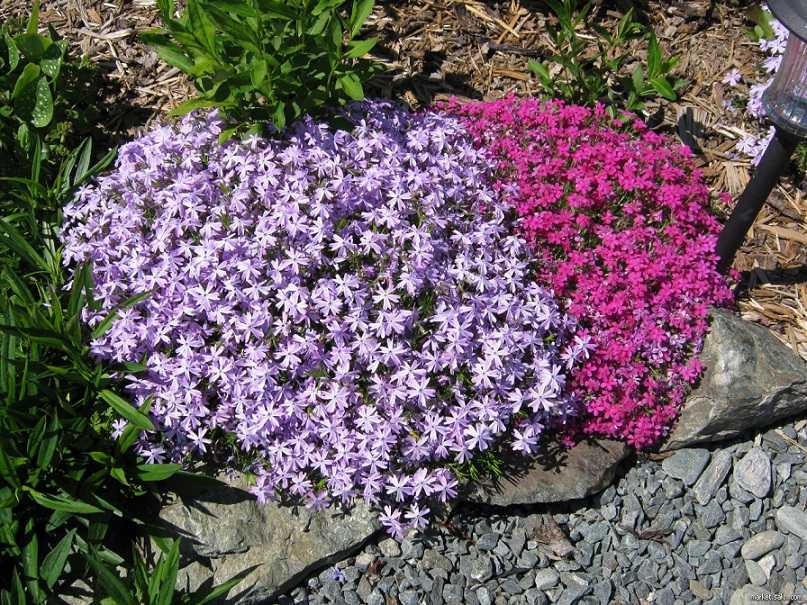 Мускари распускаются одними из первых и радуют своими синими или белыми «свечками». Вслед за ними появляются нарциссы и тюльпаны, у которых тоже много разновидностей. В мае — июне наступает время флоксов: шиловидного, Дугласа, Ругелли.