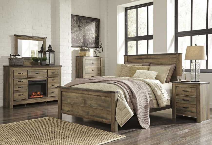 Среди материалов допускается дерево либо металлическая кровать с кованой спинкой и ножками. Для хранения вещей можно приобрести комод либо сундук. Если выбор пал на шкаф, то у него должны быть распашные дверки. Деревенский стиль – это, прежде всего темная цветовая палитра. Так что если у вас светлая древесина, то комнату нужно покрыть темным лаком. Декор играет важную роль. Без самотканых дорожек, вязанных крючком салфеток, накидок на шкаф, большого количества подушек не будет того деревенского стиля.