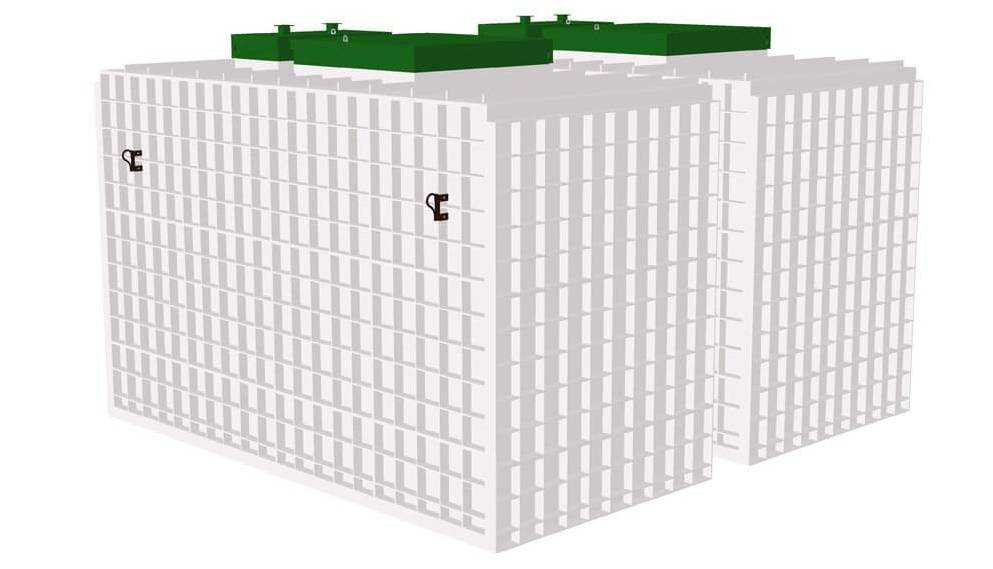 Септик разделен на три отсека. Жидкость свободно перетекает между ними с помощью патрубков: