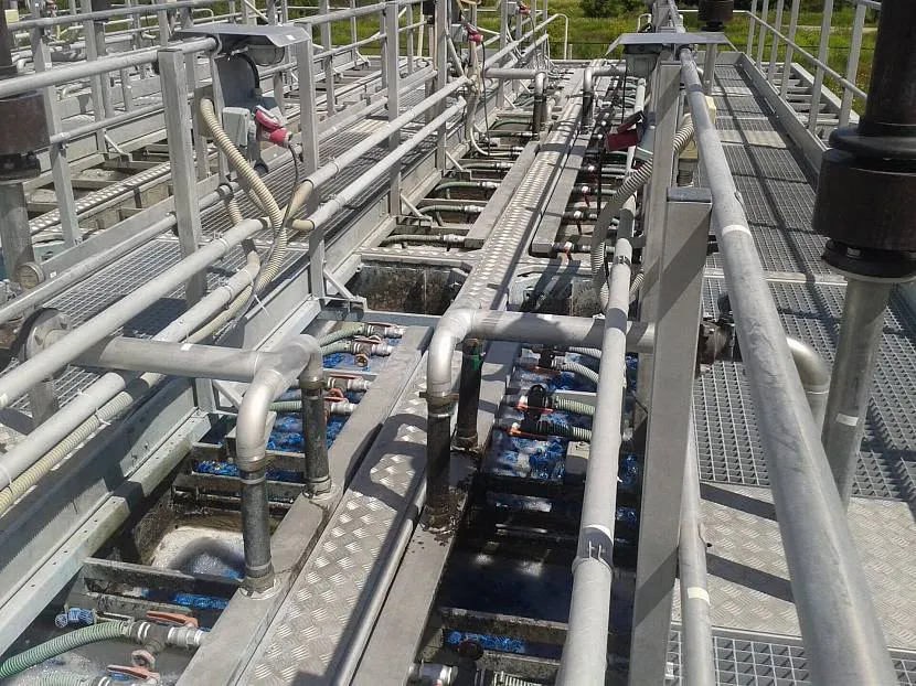 - К верхнему уровню аэротенка подводятся трубы сброса воды, и производится их монтаж.