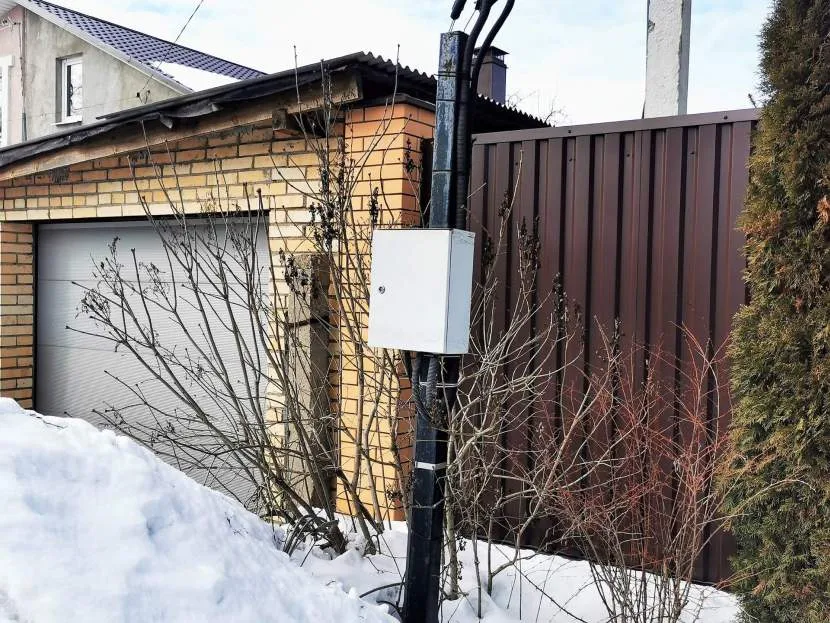 Провода от электросчетчика скрывают в специальной защитной металлической трубе. Распределительный щиток с автоматами целесообразно оставить в доме, а на столб вынести один защитный автомат.