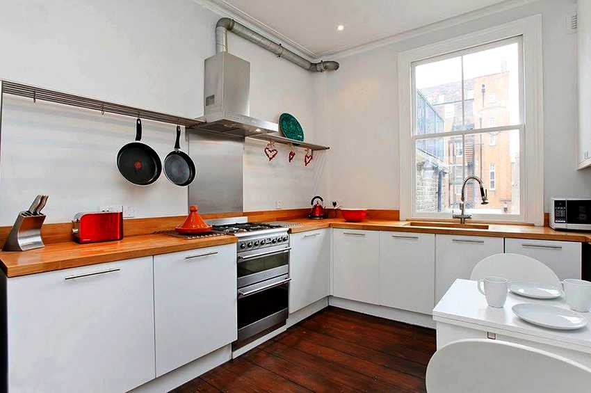 Осталось упомянуть, что вертикальные сегменты часто заделываются в секции подвесных шкафов, это скрывает магистраль от глаз. Горизонтальный участок возлежит на укрепленной на стене мебели. Тактический ход минимизирует визуальный негативный эффект монтажа вытяжки. Перед тем, как установить воздуховод для вытяжки, оцените возможность подобного решения.