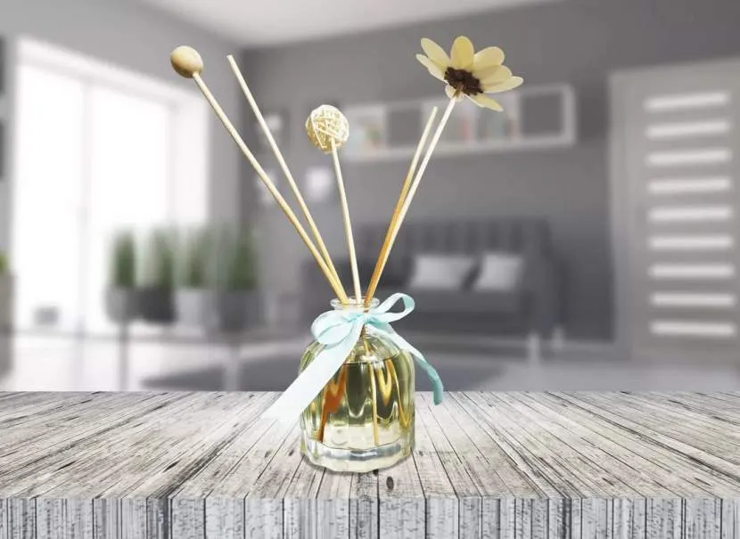 Главным рабочим элементом ароматического диффузора является тростниковая палочка. Она имеет пористую структуру, что объясняет свойство хорошо впитывать влагу. Наружная часть из-за контакта с воздухом подвергается высыханию. За счет погружения другого конца палочки в жидкость, она непрерывно смачивается. В результате создается эффект постоянного выделения аромата в воздух. Стоит отметить – можно корректировать объем выделяющегося запаха путем изменения количества палочек.