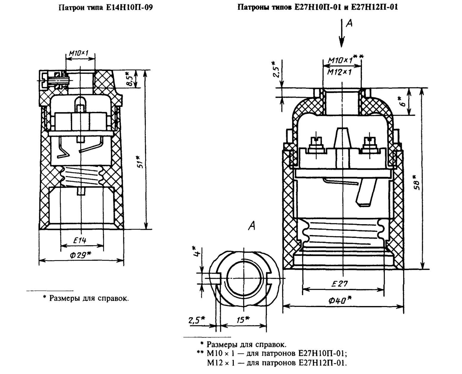 Крепится патрон в люстрах и светильниках, как правило, за донышко. В отверстии ввода провода в патрон есть резьба. У Е14 – М10×1. У Е27 может быть одна из трех: М10×1, М13×1 или М16×1. Светильники бывают подвешены непосредственно на электропроводе и на металлической трубке любой длины и формы с резьбой на конце.