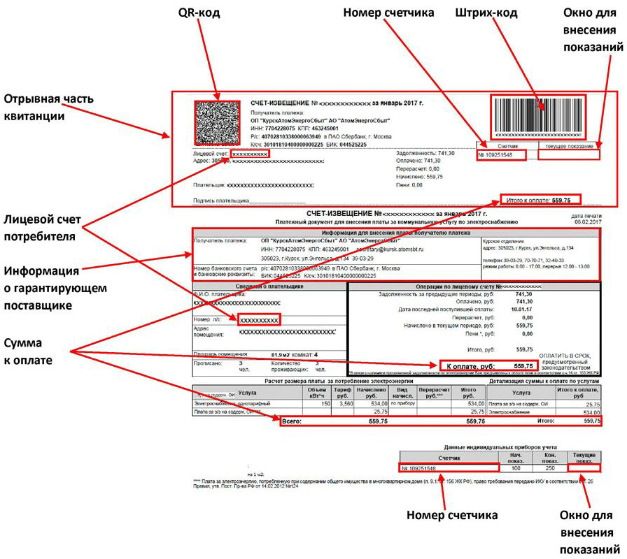 В квитанции поставщика энергии