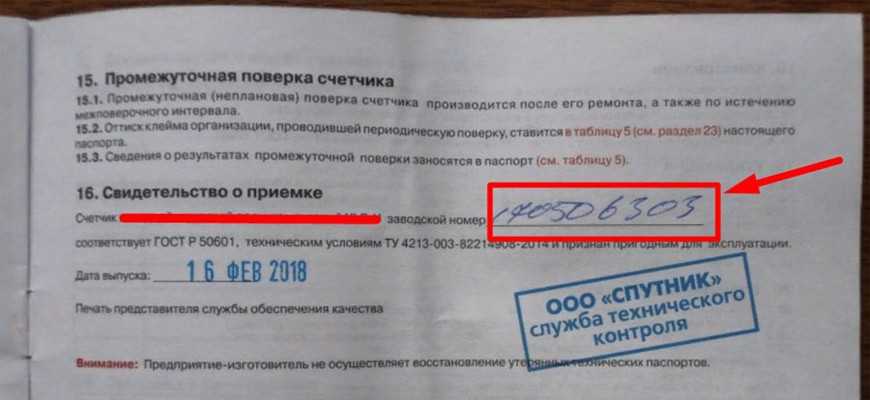 Технический паспорт устройства поставляется вместе с приобретаемым счетчиком. Номер прописан на первых страницах технической документации.