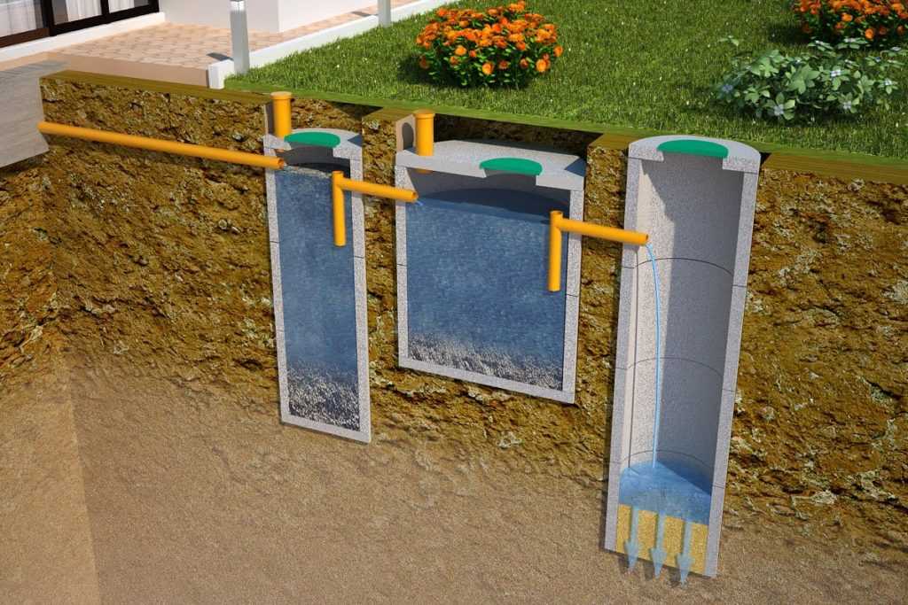 Сточная яма работает по очень простому принципу – твердые вещества оседают на дне, а вода через окна в стенах и дно уходит в грунт. Такие сооружения строятся в областях с низким уровнем грунтовых вод, иначе септик будет быстро заполняться. Его глубина редко превышает 3 метра. Загрязненная жидкость из стоков разлагается природным способом. Однако при ее заполнении следует откачивать яму механическим способом.