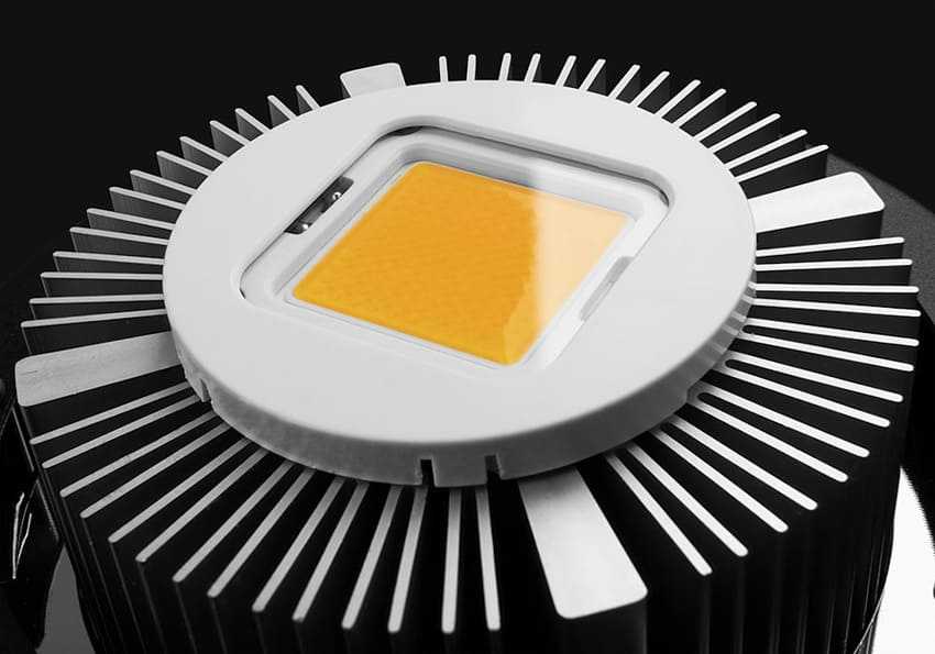 Светодиоды, которые устанавливаются в лентах, светильниках, лампах — имеют полупроводниковый кристалл, который изначально даёт свет, близкий к белому, нейтральному. Чтобы получать другие цветовые температуры, применяется материал — люминофор. Его можно увидеть, если посмотреть на LED элемент. Обычно он выглядит, как прямоугольник желтоватого цвета. Внутри этого квадратика и есть люминесцирующее вещество. Путём подбора его состава производители светодиодов добиваются светового излучения нужной цветовой температуры.