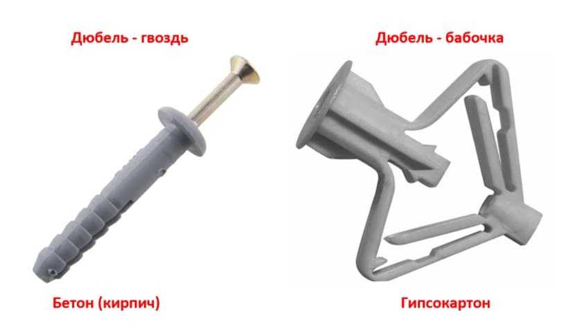- крепежные элементы – в зависимости от типа стен вам могут понадобиться как дюбеля, так и обычные саморезы, сразу отметим, что в стены из гипсокартона целесообразнее устанавливать дюбель-бабочку.