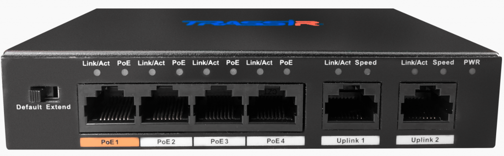 Данный коммутатор имеет 4 POE порта и 2 Uplink порта — для подключения к локальной сети (например роутер/коммутатор), а так же для подключения к серверу.