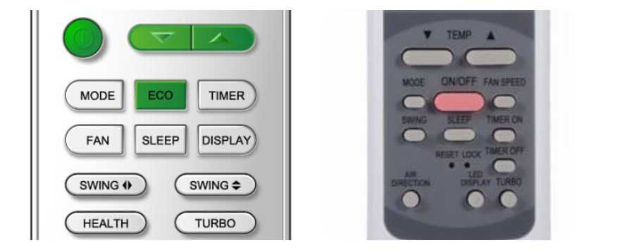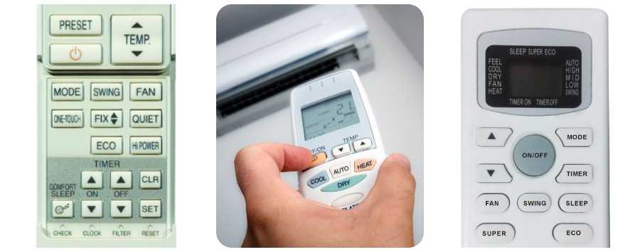 На фото: Кнопки пультов бытовых настенных кондиционеров