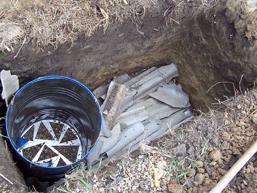 - Выкопать яму, на дно уложить слой гальки, на нее слой песка – это дренаж, необходимый для очистки стоков и их безопасного отвода.