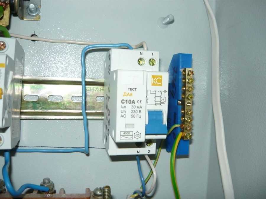 Шаг 7 – подключение проводов, идущих от комнат Далее автоматам нужно подключить все провода, выходящие из дома — те, которые ведут к распределительным коробкам, розеткам и выключателям. Действуем также, используя цветовую маркировку проводов. Нули кидаем на нулевую шину, землю – на шину заземления. Белый провод соединяется с нижними выводами автоматов, которые работают как выключатели – соединяют\разъединяют цепь. В случае с дифференцированными автоматами выходы подключаются аналогично описанной выше методике. Выход N – к нулевой шине, фаза соединяется с белым проводом.