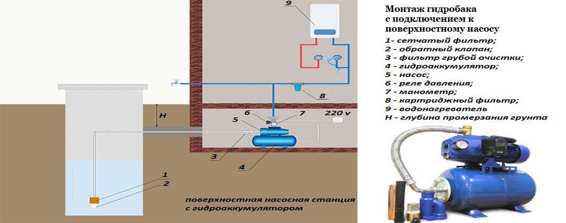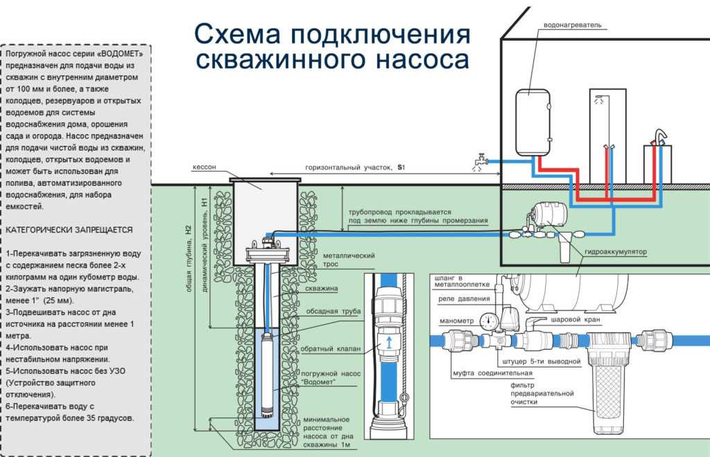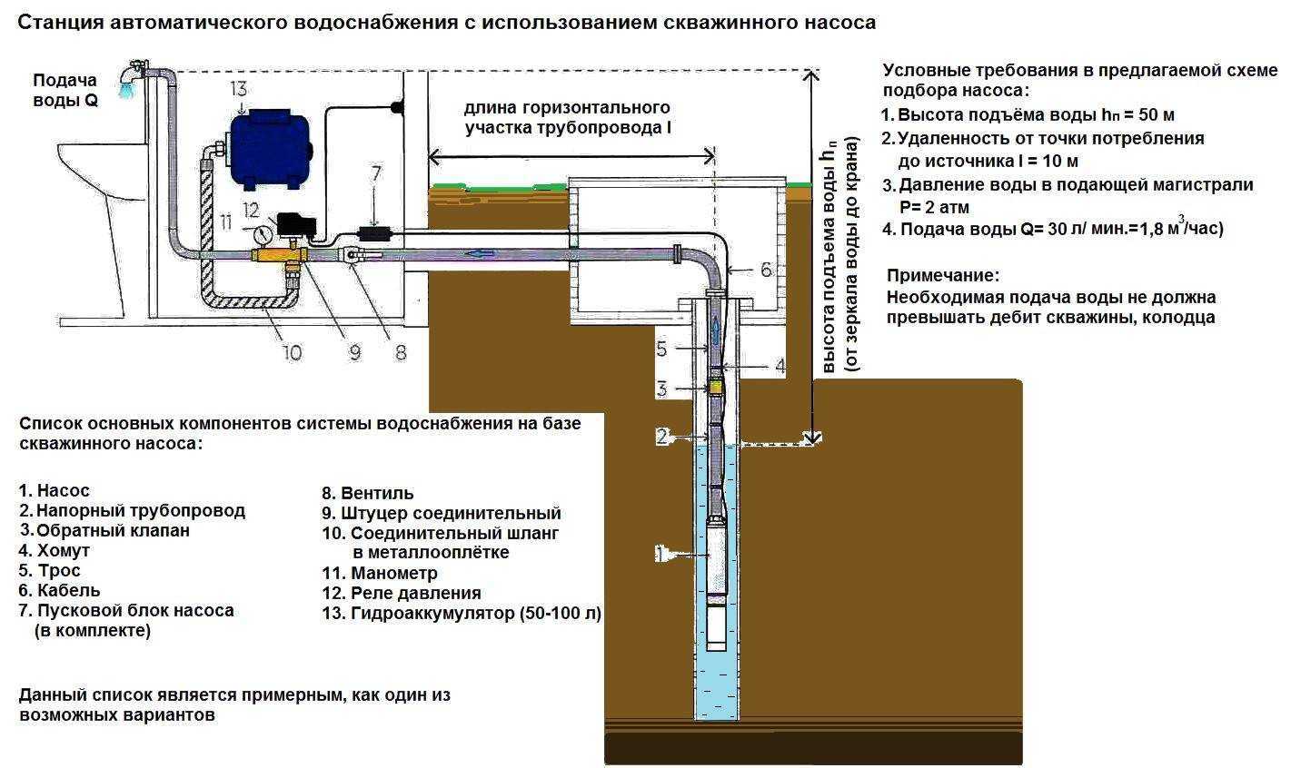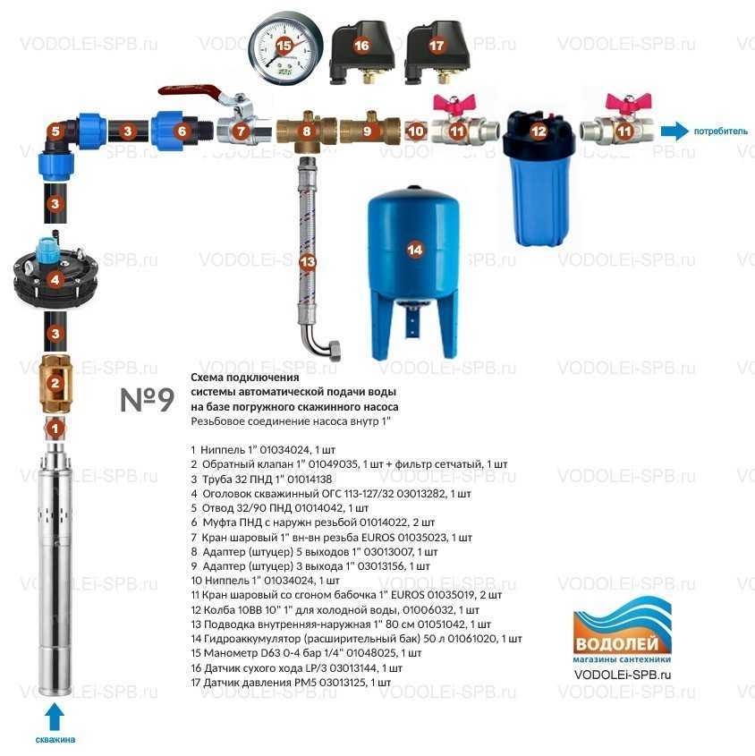 Варианты стандартных схем установки оборудования для водоснабжения частного дома с одним скважинным насосом