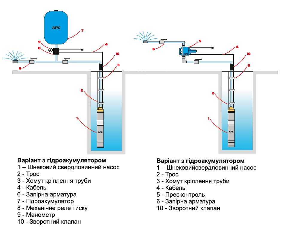 В зависимости от параметров скважины и преследуемых целей существует несколько схем подключения двух насосов. Рассмотрим подробно каждую из них.