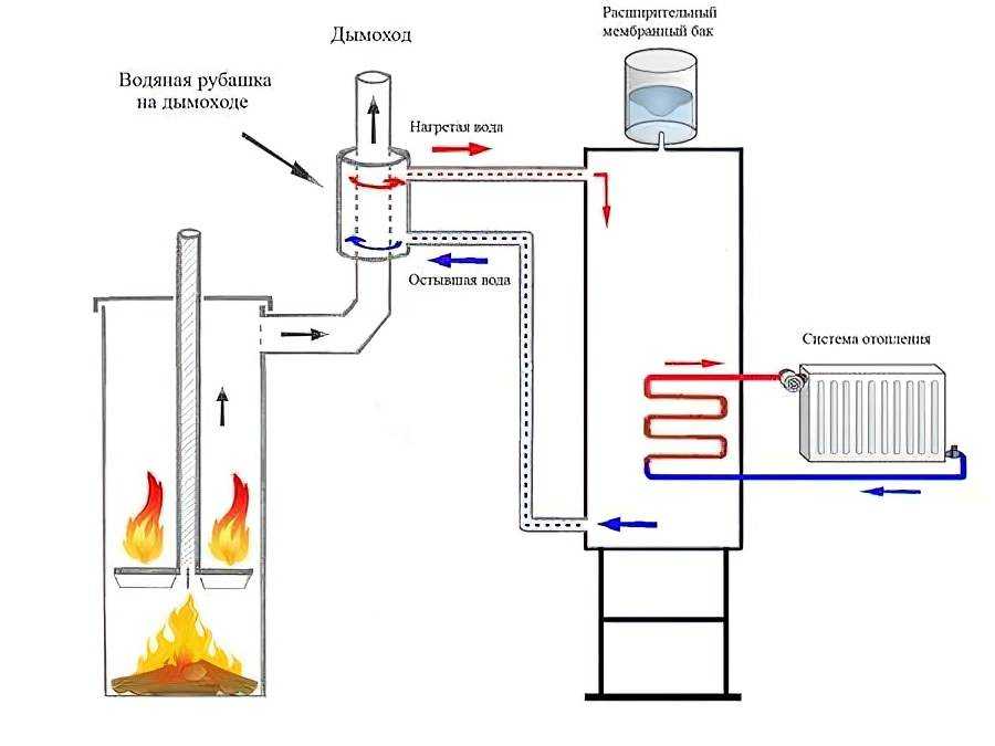 - Водяного контура, окружающего топку. Как правило, стенки у топки двойные, между ними циркулирует теплоноситель.