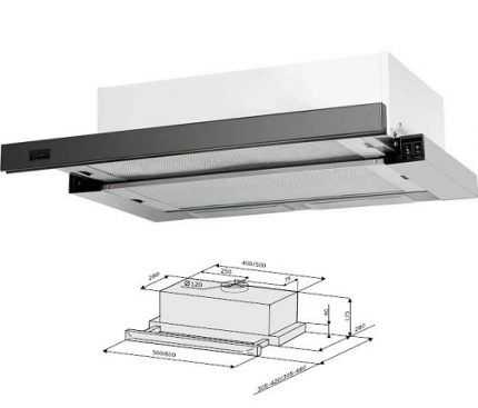 Схема вытяжки с выдвижным блоком с подробными размерами