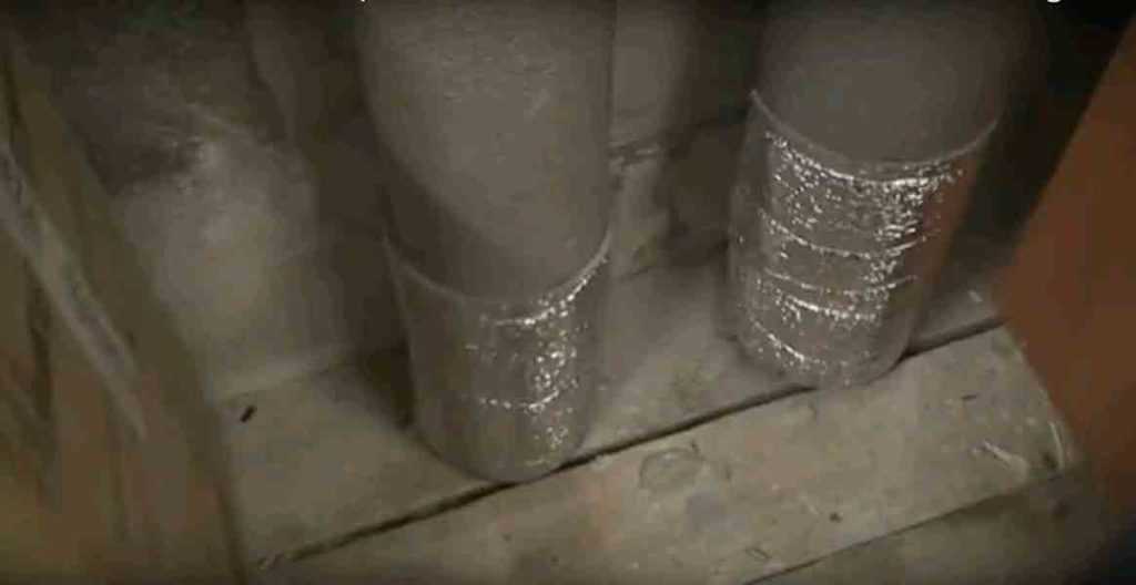 Вначале проведите небольшую подготовку, состоящую в нанесении глины на стенную поверхность, укладывании пленки для гидроизоляции и установке опалубки толщиной в 12 см.